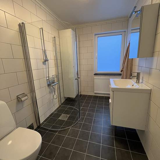 Ljus och trevlig bostad med gott om förvarning. Utsikt ner mot sjön. Lägenheten renoverades 2020 där samtliga rum renoverades. Då med nytt kök med nya vitvaror. Kakel och klinker i badrummet. Genomgående vita väggar och ekparkett i lägenheten. Tvättmaskin och torktumlare finns i gemensam tvättstuga i separat hus där vi tillåter tvätt dygnet runt då det inte stör andra. Stor gemensam trädgård. I hyran ingår vatten, sophantering och värme (vattenburna radiatorer). Hyresgästen skaffar eget abonnemang för hushållselen. 1 parkeringsplats precis u...