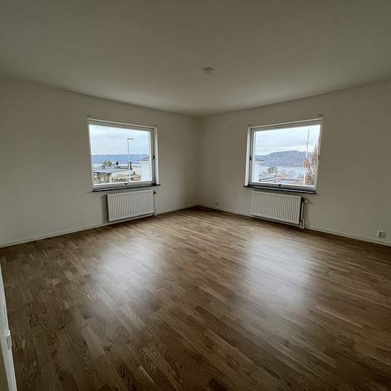 Ljus och trevlig bostad med gott om förvarning. Utsikt ner mot sjön. Lägenheten renoverades 2020 där samtliga rum renoverades. Då med nytt kök med nya vitvaror. Kakel och klinker i badrummet. Genomgående vita väggar och ekparkett i lägenheten. Tvättmaskin och torktumlare finns i gemensam tvättstuga i separat hus där vi tillåter tvätt dygnet runt då det inte stör andra. Stor gemensam trädgård. I hyran ingår vatten, sophantering och värme (vattenburna radiatorer). Hyresgästen skaffar eget abonnemang för hushållselen. 1 parkeringsplats precis u...