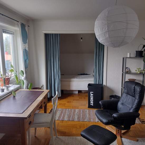 Nice and pleasant apartment in a quiet building in Sofiehem. The building is centrally located, close to the university, with good bus connections right outside. The apartment includes a small storage room. The rent includes heating, water, broadband and electricity. There is a laundry room in the basement with a washing machine, tumble dryer and drying cabinet. We would like to know a little about you and why you would be a suitable tenant. Service fee for tenant: 445