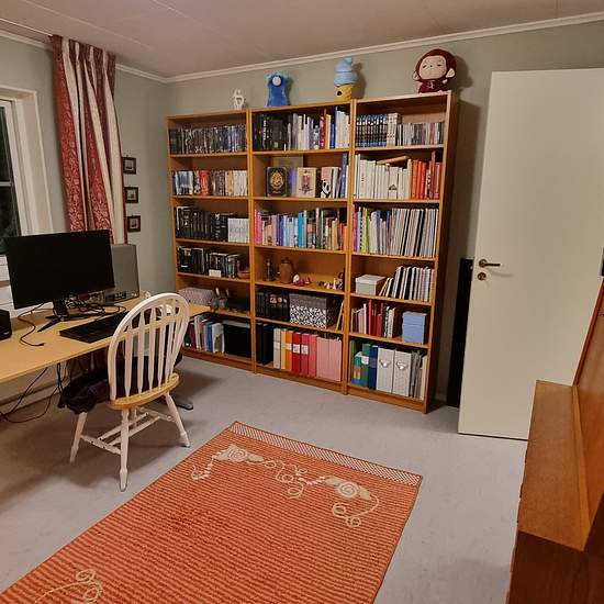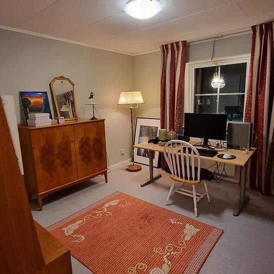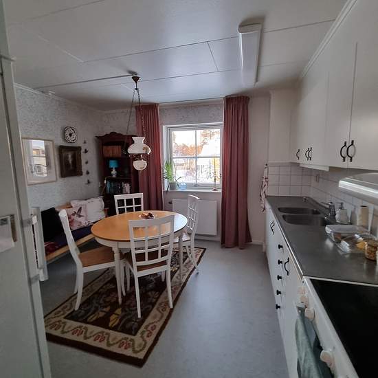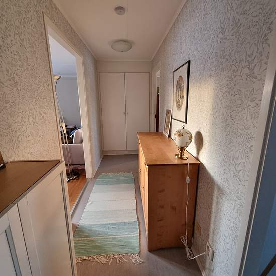 The apartment is located in a quiet residential area with plenty of beautiful natural surroundings, and Ersforsen welcomes you when you turn in from road 364. Three rooms and a kitchen one floor up, no elevator, with a large wooden balcony. Shared laundry room with plenty of available time slots; unfortunately there is no possibility to install your own washing machine in the bathroom. Appliances and floors were replaced, kitchen cabinets were painted and new wallpaper was put up in 2020. The bathroom was renovated in spring 2025. The dishw...