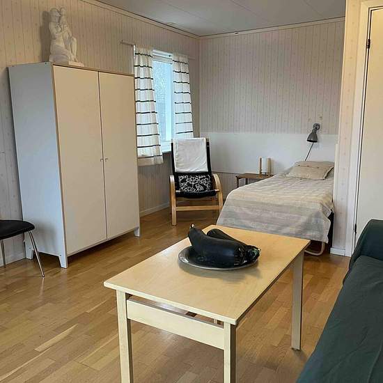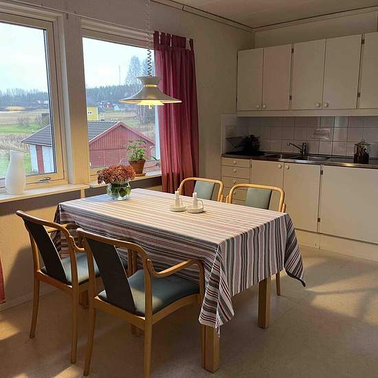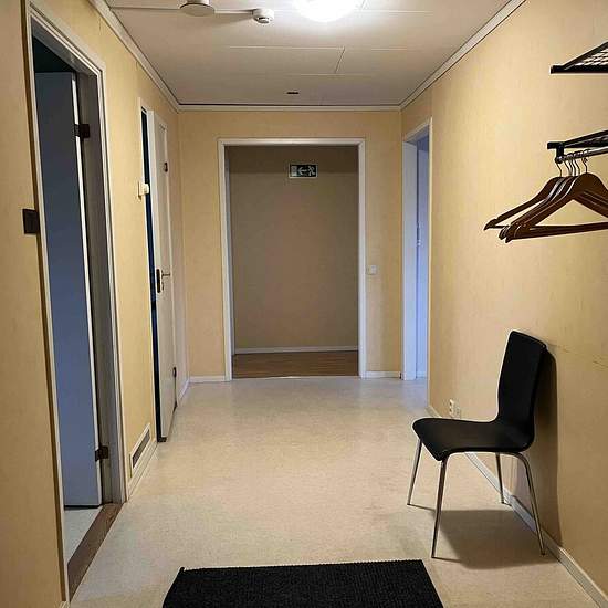 The corporate accommodation Curomed lodging is situated in a scenic location in Håkmark, 10 km from Umeå, and is an excellent option for companies. Nicely furnished apartment with three rooms and a kitchen. Comfortable beds (five) and wireless internet. Fully equipped kitchen. Washing machine in the apartment. Parking is included, as well as internet, heating and household electricity. Pets are not allowed. Free gym in the neighboring building. VAT of 12% is added to the rent. Only rented to companies. Service fee for the tenant: 945