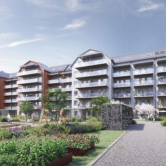 In the Rödängs Trädgårdar block apartments from 33 sqm to 96 sqm are offered. Living in Rödängs Trädgårdar gives you all the conveniences that come with a newly built apartment: a well-thought-out layout and stylish interior such as matte-lacquered oak parquet, white-painted walls, smooth interior doors and natural stone windowsills. The kitchens are functionally equipped with a ceramic hob, fan oven, dishwasher and combined fridge/freezer. The apartments with 3 and 4 rooms and a kitchen are equipped with separate fridge and freezer. The ba...