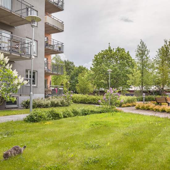 Housing The apartment, balcony, stairwell and courtyard are smoke-free. Hall: White painted walls Kitchen: White smooth cabinets, white tiles, gray countertop. Beige vinyl flooring Living room: White painted walls, oak parquet Bedroom: White painted walls, oak parquet Bathroom/Shower room: White tiles, beige floor tiles, washing machine Balcony or patio: Balcony facing the inner courtyard Possibility to repaint bedroom, living room and hall. Other spaces Storage: Located in the basement Laundry room: Klockargatan 8 Bicycle storage: Standal...