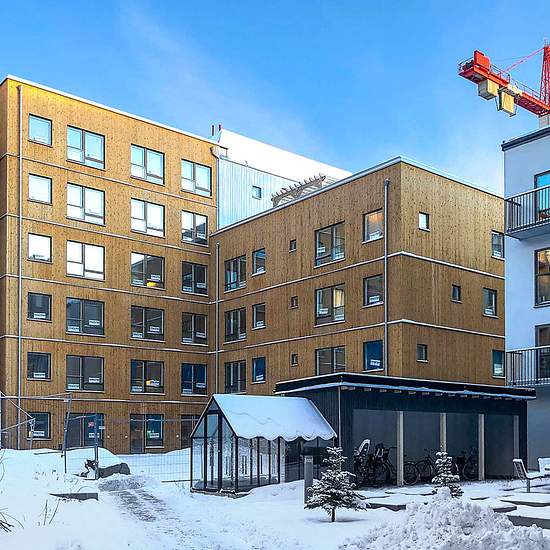 Housing The rent is published at 2025 rent levels. There are 58 rental apartments with varying apartment types and sizes, from 1-room-and-kitchen (1 rok) at 25 sqm to 4-room-and-kitchen (4 rok) at 78 sqm. The apartments have a private patio or a French balcony and a shared roof terrace as well as a communal courtyard. In the shared inner courtyard you can enjoy sun-facing seating and there are plantings, allotment plots and a greenhouse. The apartments, like all our buildings, are smoke-free. The apartments are modernly furnished in white w...