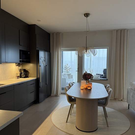 We are renting out our modern 74 sqm apartment with a large balcony solution: an enclosed balcony of approximately 12 sqm and an open balcony of approximately 12 sqm. The balconies can be opened into one large open area or divided so that half is enclosed and half is open — choice depending on preference. The residence is newly built and completed in 2023, located in a quiet and pleasant area close to Hallands Hospital in Varberg, which makes it very suitable for those who work there for a period. Layout: Open and sociable layout with kitc...