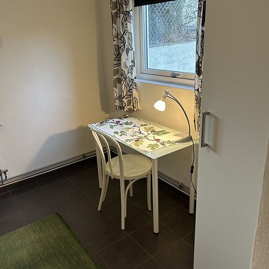 Quiet area, close to town within walking distance to the sea and the nature reserve Hästhaga. Fresh apartment on the ground floor, with a small patio with evening sun. Private entrance. You enter a hallway with a bedroom to the right, to the left you come into the living room with large windows where the inner wall is a kitchen. You continue further into the apartment with a small hall where the bathroom is to the left and straight ahead another bedroom. In each bedroom, there is a wardrobe and a chest of drawers for storage. Today the apart...