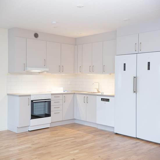 Hyreshuset på Kartografvägen 3 består av två sammanbyggda flerbostadshus i trä med 2 våningar. Totalt finns 11 yteffektiva lägenheter som består av ettor, tvåor och treor med genomtänkta planlösningar och lättmöblerade rum. Husen försörjs med bergvärme och värmeåtervinning för att ha ett så lågt klimatavtryck som möjligt. Bostäderna är smakfullt planerade med ljust målade väggar, genomgående ekparkett och fullutrustade kök med diskmaskin och induktionshäll. I badrummen är väggarna kaklade, golven av klinker och duschväggarna i glas. Utöver...