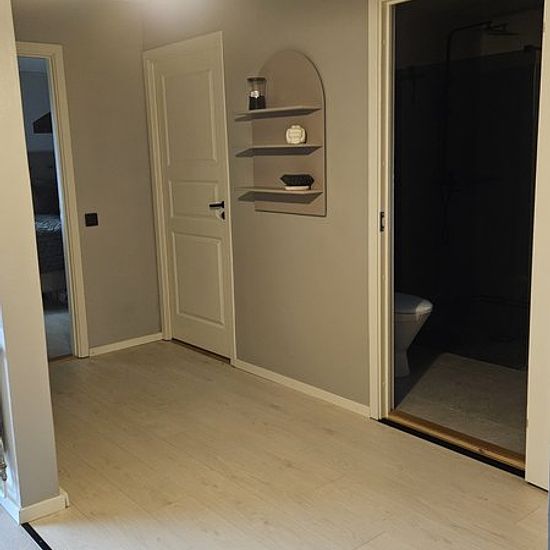 82.5 square meters, super nice location, close to school and daycare, bus stop right outside the parking, includes internet and hot water and parking space, guest parking available, laundry room and sauna in the association's premises, large plot, and corner apartment Service fee for tenant: 465