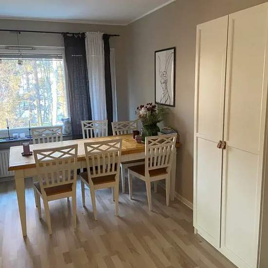 Nice 3-room apartment with balcony in Västerhaninge – partially furnished I am renting out my condominium to try living with my partner. It is a bright and well-laid-out three-room apartment of 75 sqm with a balcony. 1 year with the possibility of extension. The apartment is located in a quiet, green area in Västerhaninge, close to nature, grocery stores and the commuter train (about 30 minutes to Stockholm city). About the apartment: Size: 75 sqm Rooms: 3 (2 bedrooms + living room) Balcony with afternoon/evening sun Partially furnished (c...