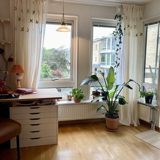 NOTE: ROOM FOR RENT (NOT the whole apartment) Nice room for rent between March 1 and June 1, with flexibility around the dates. Just ask if you need to stay longer or shorter. Suitable for a student or someone who needs housing for a shorter period for other reasons? I live in a large and bright 3-room apartment of 77 sqm at Tigerstigen 29, with an enclosed balcony facing southwest. The apartment has two large bedrooms of about 12 sqm each. One is yours and one is mine. You can have the room unfurnished or lightly furnished! Kitchen and li...