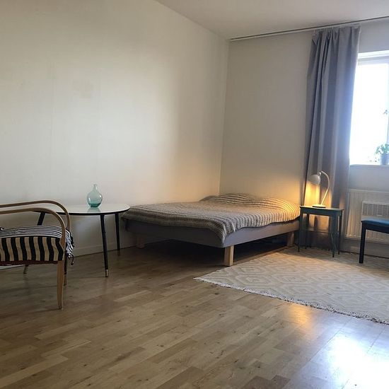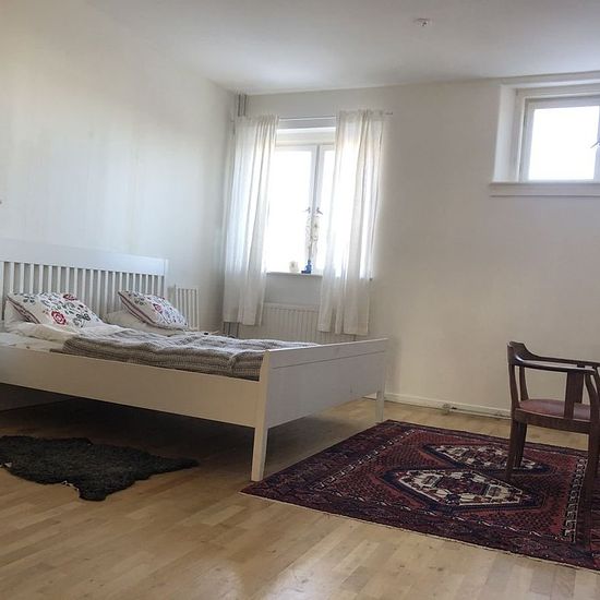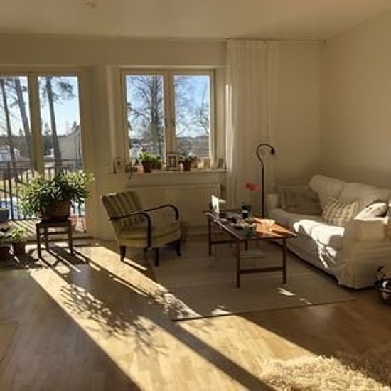 Possible to rent without deposit through Samtrygg. Monthly cost: 15,747 SEK. ________________________________________________________________ The fastest way to book a viewing is by following this link to Samtrygg: Here you will also find more pictures and information. ________________________________________________________________ The apartment is located in an old cultural building. The building is situated high up with a nice view and close to a nature reserve with beautiful walking paths along the water. Good swimming spots are abou...