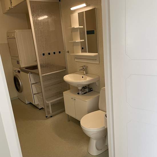 Nice semi-detached house in quiet Vinberg. Very sunny west-facing patio with a large open lawn in front. Two bedrooms and private parking at the entrance. Newly painted rooms. Storage by the entrance. Cold rent with exhaust-air heat recovery.