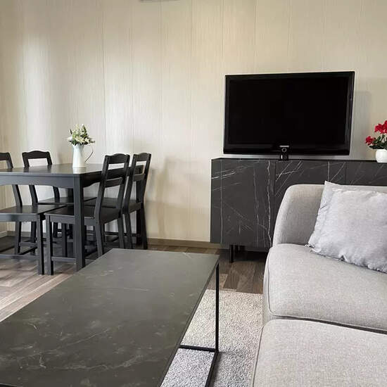 Description Furnished standalone mini house of 48 sqm in a rural location. Free parking. Kitchen with stove and oven, refrigerator and freezer, dishwasher. Bathroom with shower, washing machine, towel warmer. 2 bedrooms, 1 with 2 single beds and 1 with a double bed. Living room with sofa and TV, dining table with 4 chairs. Deck with space for a grill and dining area. Commuting options such as bus and train are available in Stehag, 4.6 km away. Eslöv is 10.6 km away. Biking distance to Ringsjön and a fish shop, 2.6 km. Nearby golf cou...