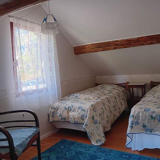 Note: Not suitable for people who use walkers. Silence, idyllic nature and the forest surround this cottage. If you want to get away from civilization and the city, this is the ultimate destination. No noisy neighbors. Forest, fields and tranquility. If you're looking for that, get in touch. 2 bedrooms, an adjustable electric double bed, and 2 separate beds. Steep stairs, so not disability-accessible. Old-fashioned kitchen with modern conveniences. Cozy chamber. Summer cottage only, not for permanent residence. Bathroom with shower and inci...
