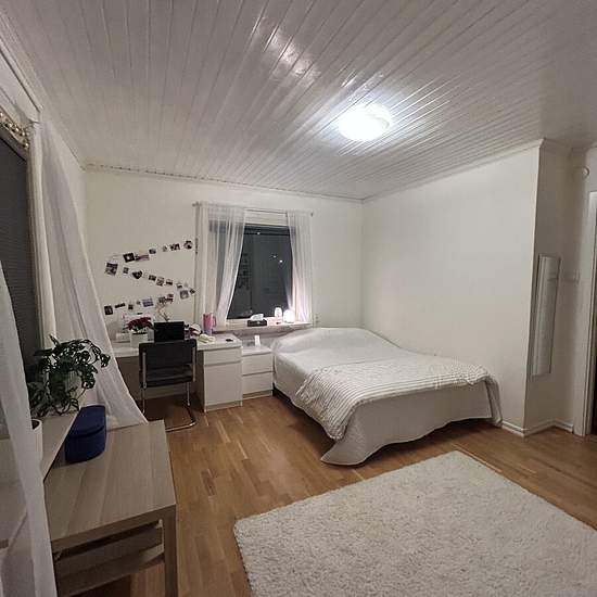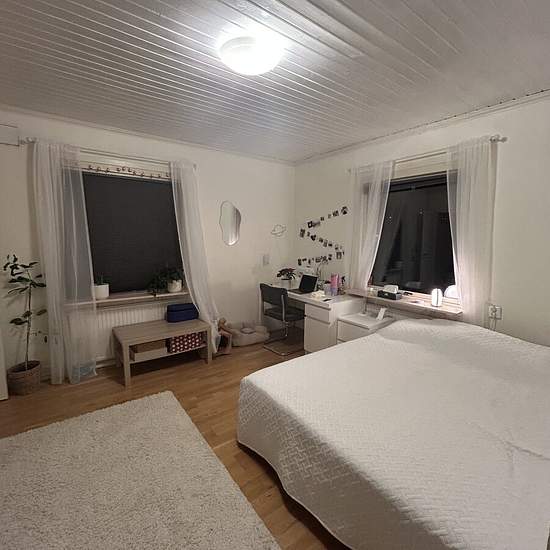 Room for rent in a furnished home for females only. Located on the main floor of a villa with a garden and terrace. The kitchen and bathroom are shared with another girl and two cats, and a washing machine and dryer are located in the basement. Rent includes everything. It will be rented directly from the owners; I will be away during the period traveling. Service fee for tenant: 247