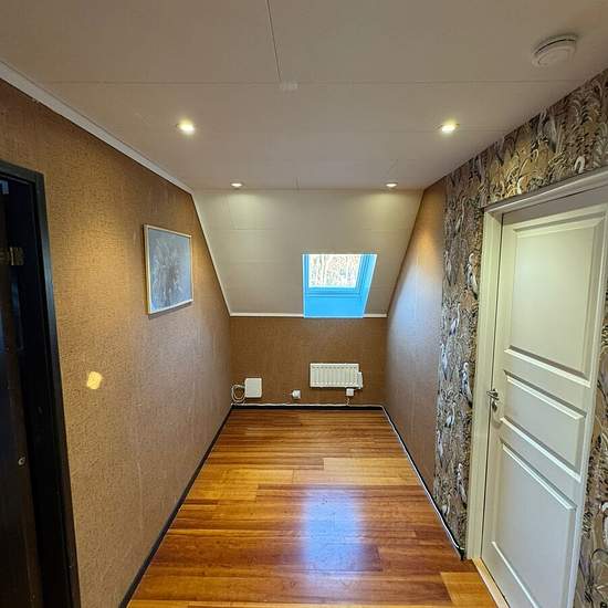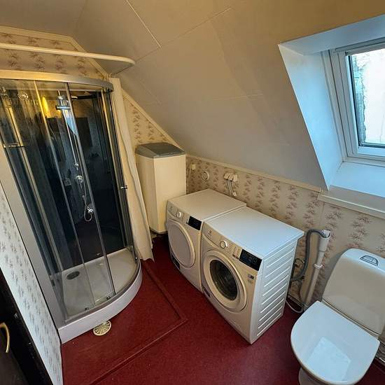Newly renovated three-room apartment with private entrance for rent in Helgered, Hisingen We are now renting out a newly renovated upper floor in our house on Helgeredsvägen, Hisingen. The apartment is a three-room unit and consists of two bedrooms, a living room, a kitchen, a bathroom and a balcony. It has a private entrance and is located in a quiet and pleasant area, with good bus connections to the central station and Volvo. Internet, garbage collection and water are included in the rent. Service fee for tenant: 594