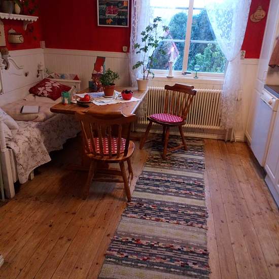 Rent out for a maximum of one year at a time; shorter rentals are also possible. If everything works well, the contract can be extended for another year, and so on. Beautiful furnished small villa, painted traditional Falu red with white corners, with a leafy, verdant lot that is largely private. The plot is about 550 sqm with a breathtaking view toward Björkås. The house is furnished, living area 78 sqm and an additional area of 44 sqm. This house was built for the officials of the iron ore mines and the whole village, Bergslagsbyn, is K‑li...