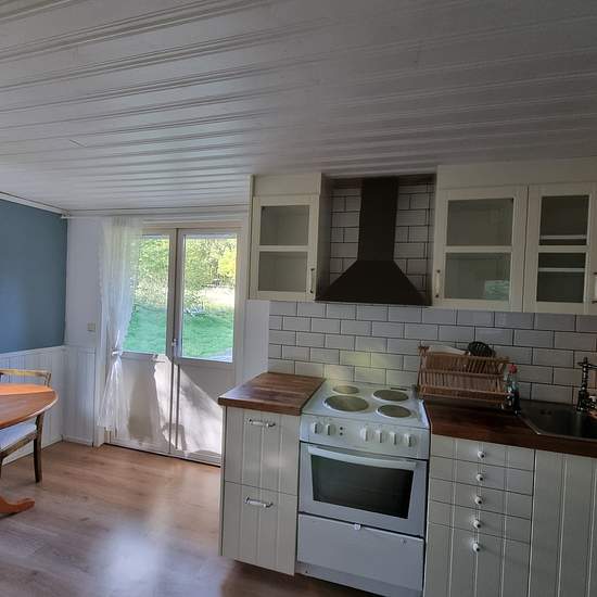 We are now renting out our lovely cottage from February until March 29. The cottage is rented furnished, but without kitchenware. It is secluded on its own plot on beautiful Orust, yet still close to services. The cottage is about 5 km from Henån, where you can find everything you need: grocery stores, bank, pharmacy, Systembolaget (state alcohol store), fish shop, restaurants, etc. It is about 3 km to Slussen, where you can find salty sea baths and occasional restaurant service in the evenings. You can also walk there easily in about 30 mi...
