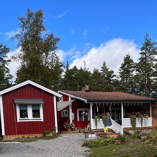 Nyrenoverat hus och Attefallshus från 2023 med sjöutsikt. I härliga Gladö ligger detta boende fördelat på två hus på södervänd tomt, granne med naturreservat och utsikt ner mot sjön, där badplats och lekplats finns på bekvämt badrocksavstånd. Kort gångavstånd till busshållsplats med buss som ansluter till pendel i Huddinge och tunnelbana i Högdalen. Vid busshållplatsen finns även paddel och tennisbanor. Fin södervänd och insynsskyddad tomt som förutom härliga uteplatser ger möjlighet till egen odling och trädgård om så önskas. Boendet ...