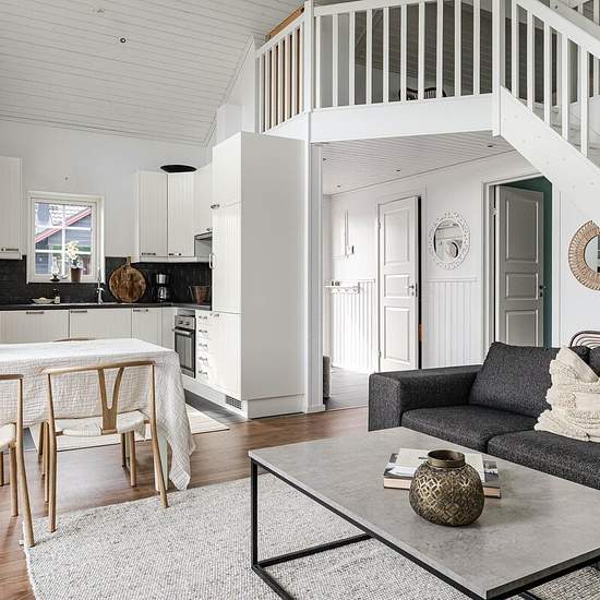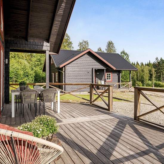 Modern villa surrounded by greenery with views of the Kungsberget ski resort. The area consists of an eco-friendly cabin village of four detached villas in close proximity to the popular Kungsberget ski area. With only a few minutes to the slopes and surrounded by calming greenery, this is a place that lives year-round — for both the active skier in winter and the cyclists, golfers and nature lovers of summer. The house is approximately 80 sqm with an upper floor that offers three spacious bedrooms, a sauna, generous heating storage and ope...