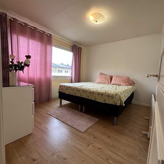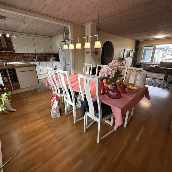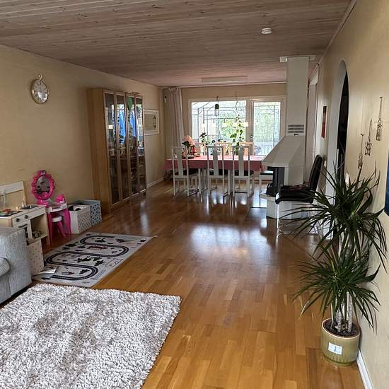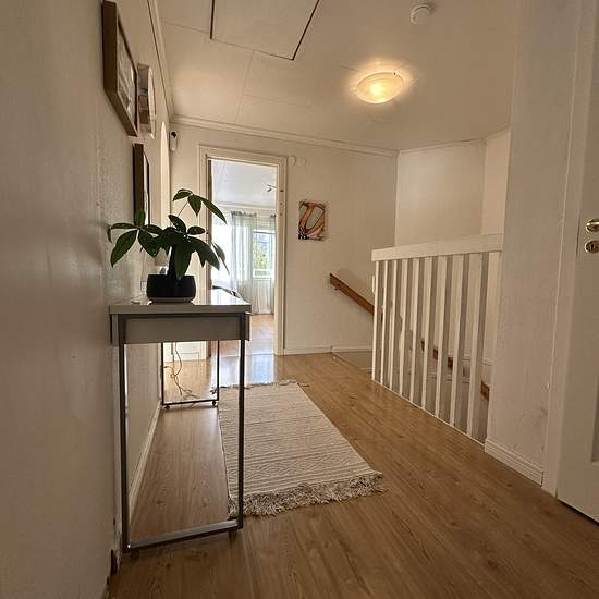 We are renting out our townhouse located in Viksjö. Two floors. The first floor has the kitchen, bathroom, laundry room, dining area, and living room. The second floor has a shower, four bedrooms, and a storage room. Free parking and a very nice outdoor patio. Viksjö center is 600 meters away, close to two bus stops. The family is friendly and there are very good neighbors! The rent includes TV, internet, water, parking, and garbage collection. We can discuss the rent, plus or minus. Service fee for the tenant: 862