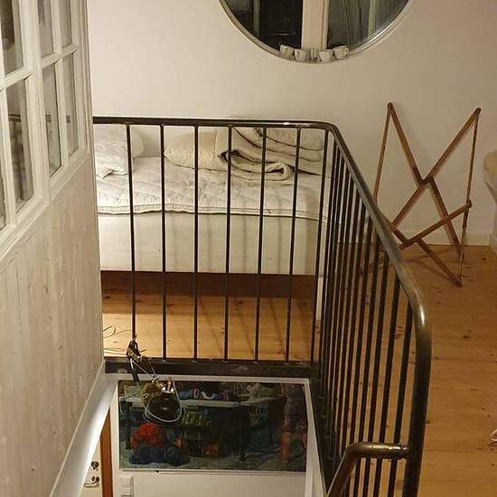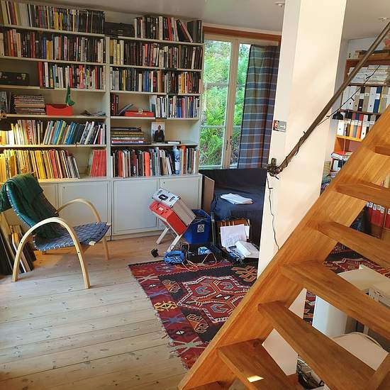 Storholmen är en ö i Värtan med fast båtförbindelse till Ropsten, Ekudden och Lidingö. (Går mellan 06:00-23:00) Huset är i två plan om ca 30 m2 vardera. Ett litet kök med spis, kyl/frys och matbord för två och ett vardagsrum med soffa på plan ett. På plan två finns tre små sovrum med 120 cm breda sängar. Huset ligger på en 1500 m2 stor tomt intill ett större hus där vi bor. Ytterligare ett mindre hus (20 m2, också vinterbonat med kök/dusch) och en brygga finns på tomten. Boendet är lämpligt som studentboende för en eller två studenter e...