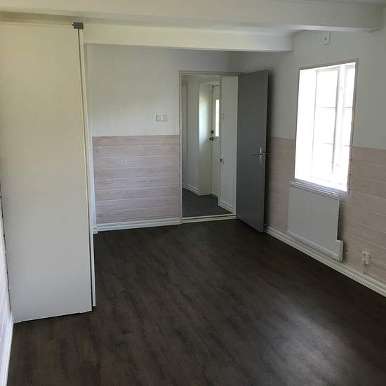 OBS: DETTA ÄR ETT HUS SOM UTHYRES. Snabbfakta: - 2 sovrum med laminatgolv. - 1 allrum med laminatgolv. - 1 kök och korridor tillsammans. - 1 badrum med dusch. - 1st Tvättstuga med tvättmaskin och torktumlare - 2 hall/entréer. - Källare med förrådsmöjlighet. - Uppvärmning med luft/luft värmepump och kamin. - Stor trädgård på över 1000m2 gräsmatta och en uteplats utanför köket. - Parkeringsplats för minst 2-3 bilar. Beskrivning: Huset renoverades 2016 med nya ytskikt och installationer. När man går in via huvudentrén hittar man en mindre ha...