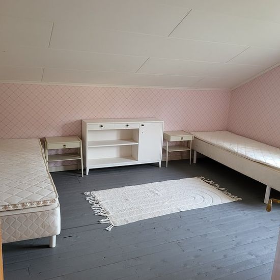 I have a house in Vebomark with three rooms and a kitchen, available for rent. On the ground floor, there is a kitchen, living room, toilet with shower and washing machine, as well as a alcove with access to the terrace. On the upper floor, there are two bedrooms and a newly renovated toilet. There is a boiler room in the basement and plenty of storage space. The house can be rented partially furnished if desired. The rent is 5000 kronor and includes costs for water/sewage, garbage collection, and broadband. The tenant is responsible for...