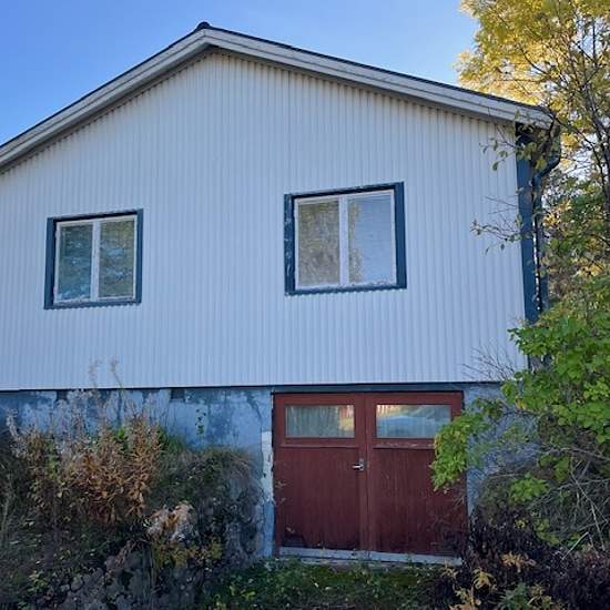 Kitchen, living room, two bedrooms, WC and shower on the ground floor. Food cellar, laundry room, shower, sauna, recreation room and garage in the basement. Rented to 2-4 people with furniture, household goods etc. Small separate outdoor storage for bicycles, kick sleds, garden tools etc. The house may possibly be sold at a later date. Plot of 1000 sqm. Service fee for tenant: 346