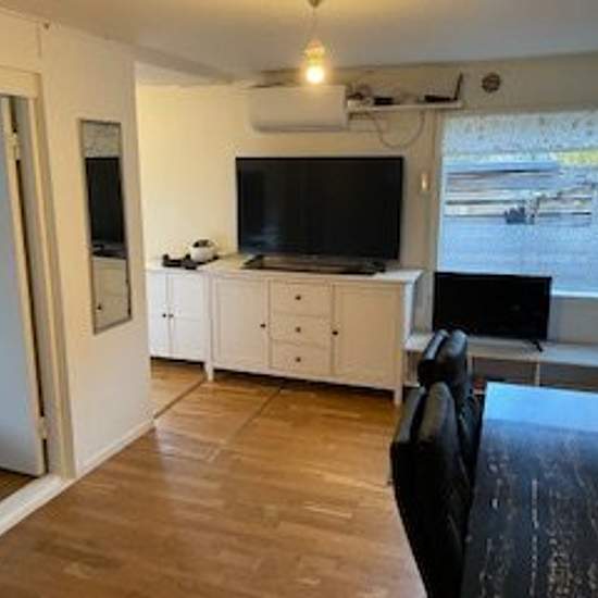 Härligt litet hus i Saltsjö-Boo med uteplats, nära busshållplats. Ca 50 kvm, 3 rum: 2 sovrum samt vardagsrum med kök och hall. Köket är utrustat med spis, ugn, kyl och frys. Matbord med stolar samt soffa ingår. Badrum med toalett, handfat och dusch. Tvättmaskin finns. I hyran ingår kallvatten, sophämtning samt möjlighet till parkeringsplats för bil. Vi söker en skötsam person eller familj. Serviceavgift för hyresgäst: 684