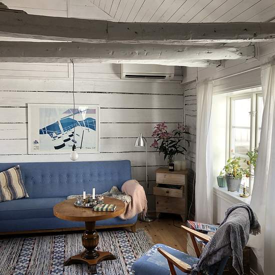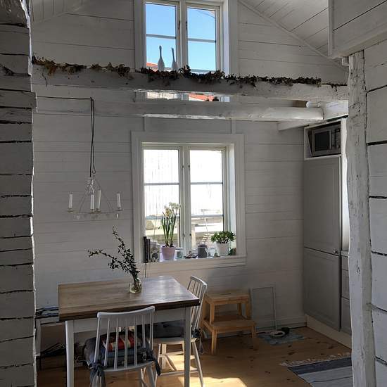 We rent out our holiday cottage in Skärhamn. It is winterized and a cozy house with a loft in addition to two bedrooms, a living room and a kitchen. It is located in the older part of Skärhamn and has a wood-burning stove as well as an air-source heat pump for optimal efficiency. There is good parking available near the house, but not directly adjacent to it. The house is close to the square and a bus stop for easy access to public transport. Service fee for tenant: 495