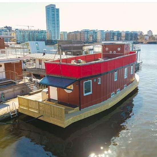 Welcome to Renaissance at Pampas Marina - a newly renovated houseboat with fantastic views over Ulvsundasjön. Primarily rented to companies. Fully renovated 2024/2025 Total area 120 sqm (74+46) Base rent (excluding utilities) 29,000 SEK/month Rented unfurnished but can be furnished at extra cost Interior The entrance level offers a generous open-plan layout with a new kitchen and appliances. Large bright living room with a wood-burning stove and a patio door out to the bow of the houseboat. Fully renovated bathroom with shower cabin, toile...