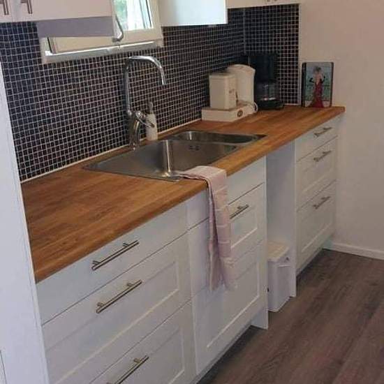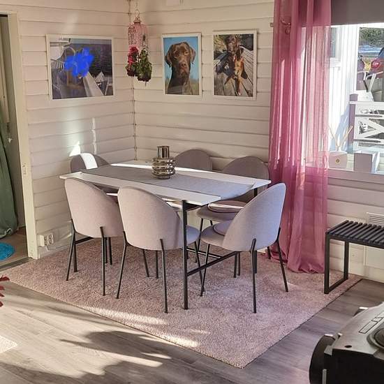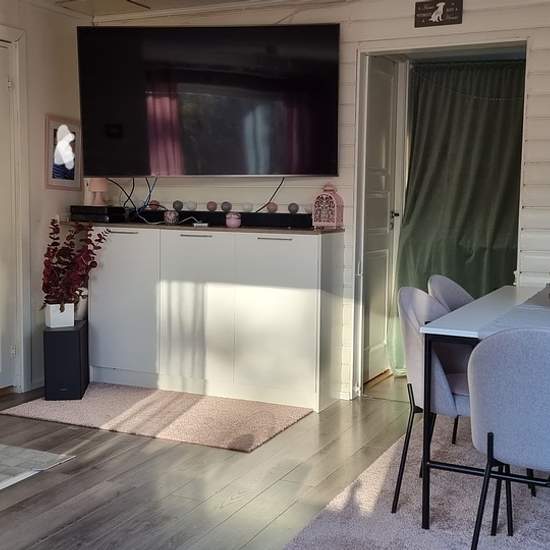 House in the countryside with a stress-free, undisturbed location and 3 neighboring houses (but no overlooking). - Newly renovated to permanent standard - Living area 60 sqm - 70 sqm sun terrace/deck along half of the house - 2 bedrooms = 12 sqm + 7 sqm (own entrance) - 1 sleeping alcove with curtain / small office / small "walk-in closet" - Kitchen with Gorenje stove + wood-burning kitchen stove for heating, e.g. in winter - Brand new air-source heat pump - Bathroom with shower and washer-dryer combo + underfloor heating - Living room 17 s...