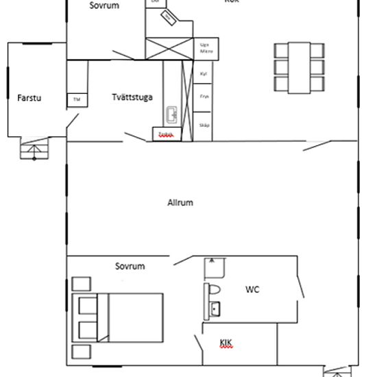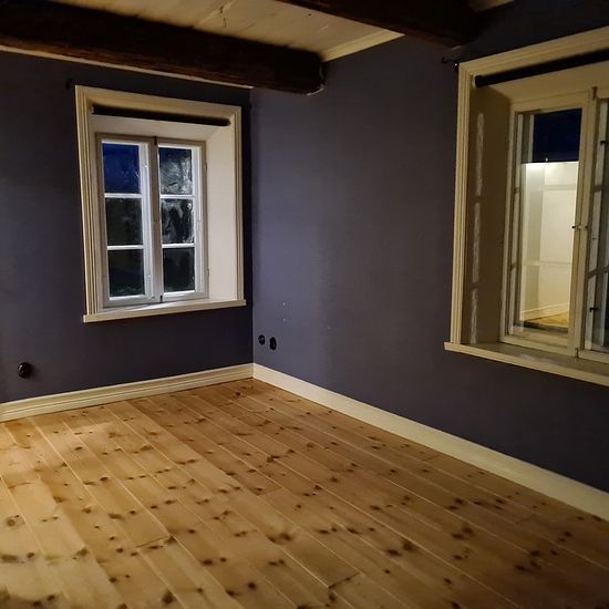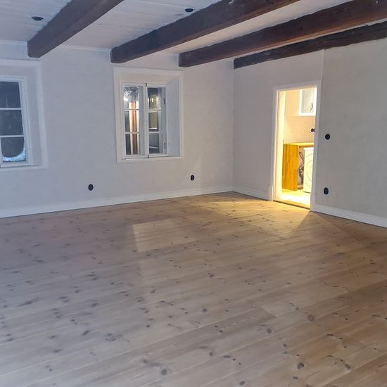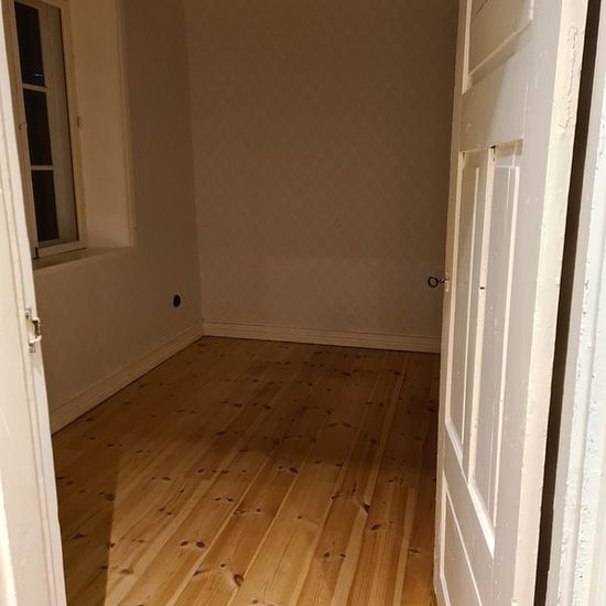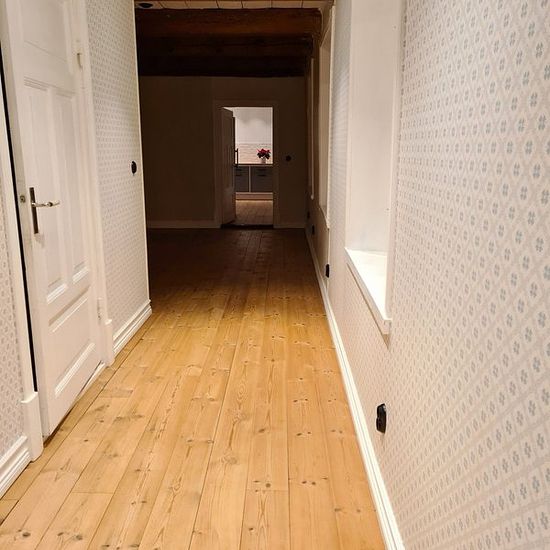 Cozy renovated 19th-century house in a village setting outside Stehag. Close to nature with nearby walking areas and illuminated exercise trails. The house has 110 sqm of living space on one floor, divided into 2 bedrooms (one large and one smaller), large living room, laundry room, entrance hall, fully tiled bathroom, large country kitchen with dining area. The house features wooden floors, underfloor heating, induction hob, microwave, large fridge and freezer, etc. Garden with lawn, garden storage, and parking space for two cars included...