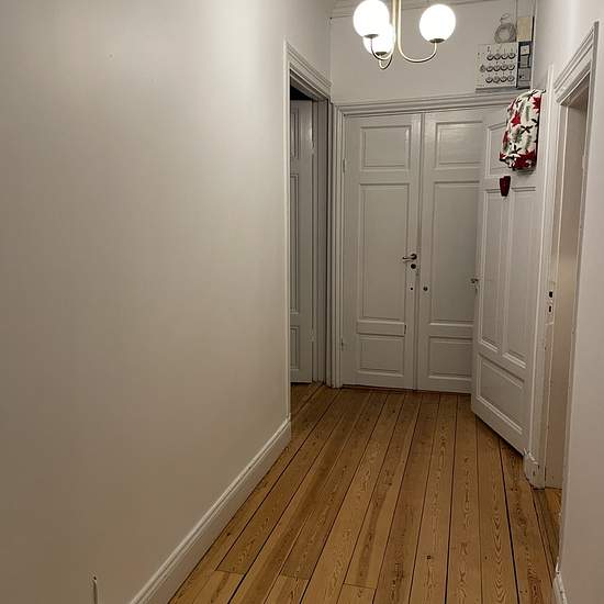 Beautiful turn-of-the-century apartment with an associated yard and a conservatory. 2 tiled stoves and 3.05 m ceiling height. Large yard and a wooden deck. Within walking distance to the town center and the commuter train. A small gym in the basement. Electricity is included in the rent. 1 parking space is included in the rent. Service fee for tenant: 1100