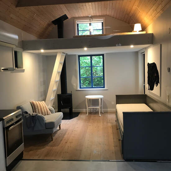 Fantastic little newly renovated house in a unique environment on Stora Essingen, waterfront property. Newly renovated with a new kitchen and a sleeping loft with a 140 cm wide bed. The house is located near the French school. Perfect for a small family. The house is accessed via a long staircase from the public road, meaning the accommodation is not suitable for individuals who have difficulty walking stairs.