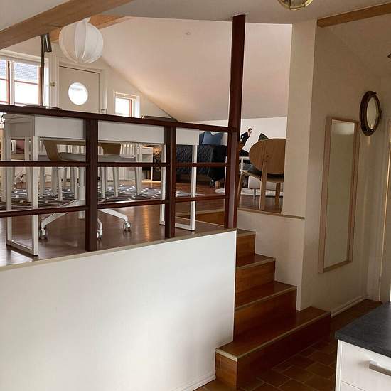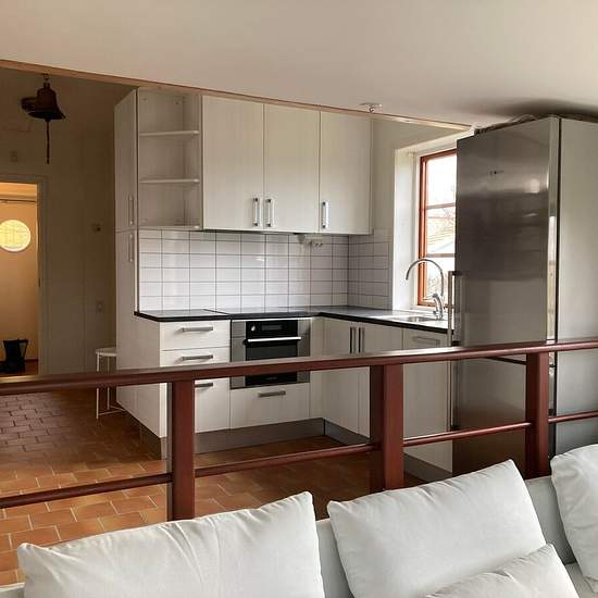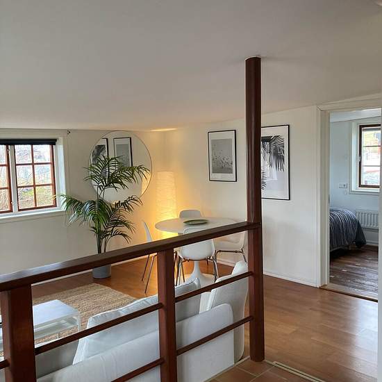 Welcome to a unique and charming house in Hjuvik. The house offers a pleasant bedroom with space for a double bed as well as a bright living room with space for a dining area and a lovely sea view from both the living room and the kitchen. The kitchen is well equipped with an oven, dishwasher, fridge and freezer. Half a flight up there is an additional common room with extra sleeping possibility in the form of a sleeping loft, as well as space for, for example, a sofa group and a larger dining table. There is a bathroom fitted with a shower....