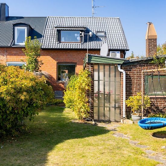 Charming townhouse, centrally located on a quiet street in Trelleborg. 100 sqm of living space on 2 floors plus a private parking space. Lush garden of 284 sqm with sun for most of the day and several cozy outdoor areas, one of which is covered. Storage and a playhouse on the property. Fruit trees, etc. On the first floor, there is an open floor plan with a living room and kitchen with a large modern kitchen island (2026) as well as a guest WC. On the second floor, there is 1 bedroom and 1 family room/or extra bedroom as well as a bathroom w...