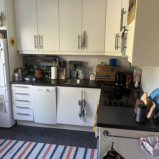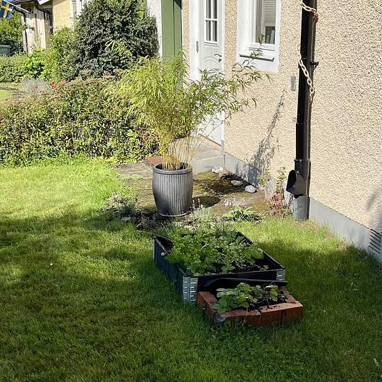 One-story terraced house 70 sqm + 26 sqm additional space. 516 sqm plot. Heated garage and laundry room. Parking in the garage or in front. Laundry/storage with washing machine and tumble dryer. A rough storage space in the attic is available for hard-wearing items. The roof is new as of 2023. You must be smoke- and pet-free. Fiber is installed. Satellite dish for the Astra satellite with hundreds of free foreign channels (no subscription needed). District heating. Low-maintenance garden front and back, with the option for your own small...