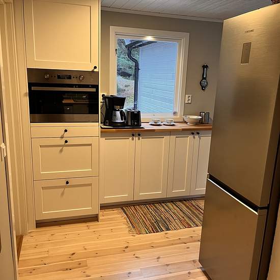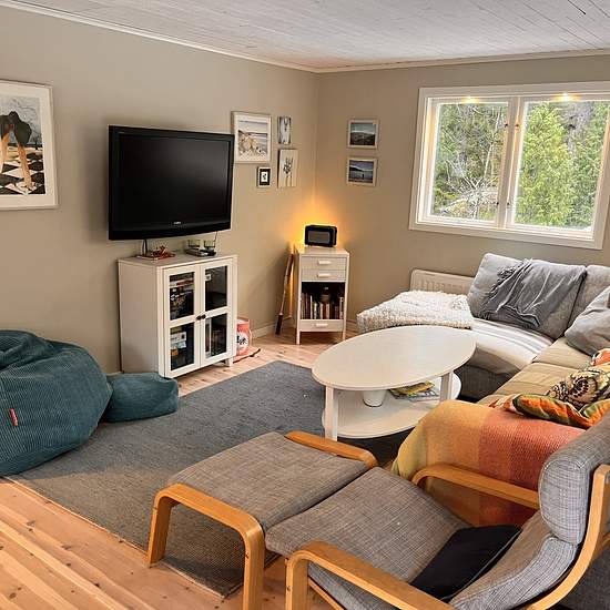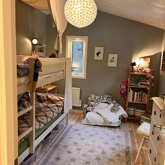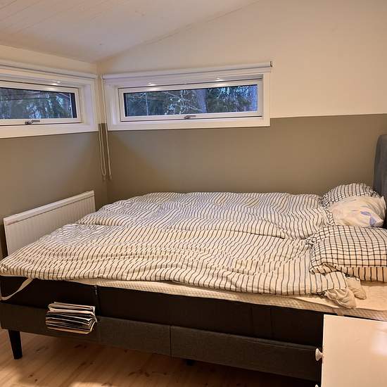 Lovely house of about 60 sqm that has undergone extensive renovations and an extension in 2023–2024. Approximately 35 minutes from Slussen. About the house Two bedrooms with a double bed and a bunk bed, respectively, providing a total of four beds. Living room with fireplace, sofa, TV and dining table. Modern kitchen with, among other things, a dishwasher and a washer/dryer. Bathroom equipped with a shower and a flush toilet. AC and internet are available in the house. In 2023–2024 the house was extended and renovated with, among other thin...