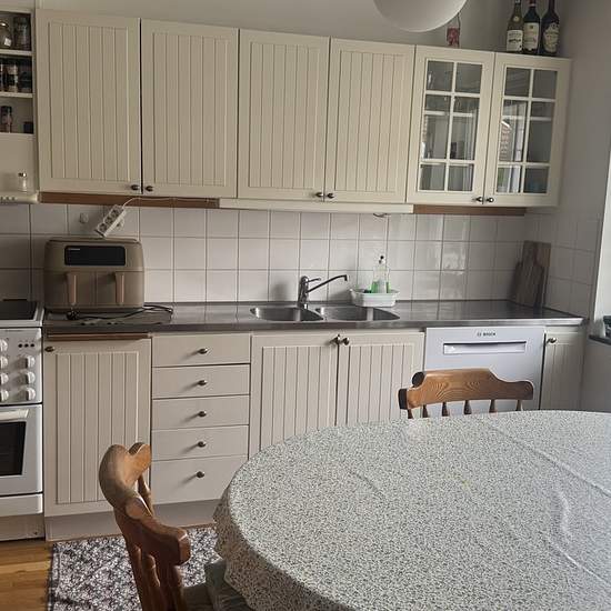 The entire upper floor, which includes a large bedroom and a smaller bedroom with its own WC, is for rent in a townhouse on Rindö (Vaxholm). Included in the rent: - two bedrooms - electricity - water - storage room - double bed - wardrobe - internet (fiber) - shower/WC - kitchen, fully equipped - laundry room - living room with TV 7,000 SEK/month. Suitable for 1–2 people. The townhouse is in good condition and has its own patio and garden. Parking is available on the street outside the residence. Close to the water and nature. A ferry co...