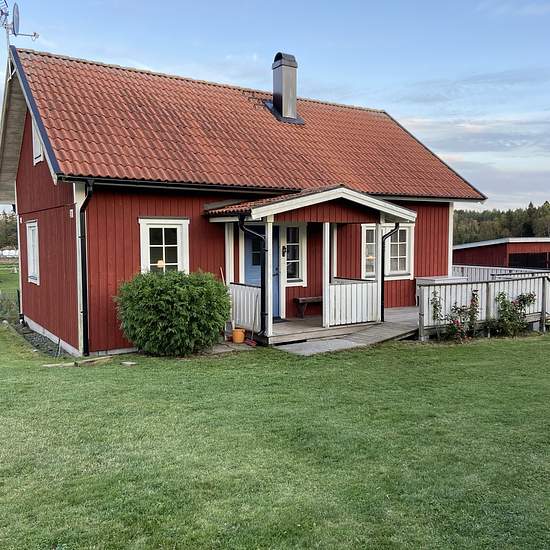Nice house for rent on a horse farm in Norrtälje. Since the previous tenant has bought a house, this house will be available from May 1st. It is a single-story house of 85 sqm, consisting of 3.5 rooms. The house has triple-glazed windows and is equipped with an air heat pump and a good wood stove for extra heating, a dishwasher, a washing machine, a dryer, as well as a large nice terrace facing south, a yard, and a storage shed. The house is best suited for two people. We are looking for someone who has horses. We have a stable with large b...