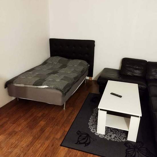 Studio, 36 square meters, with a separate kitchen and storage/wardrobe. Heating, water, TV and broadband included. Close to bus, shops, restaurants, SÄS hospital, motorway, etc. Combined washer/dryer in the bathroom.