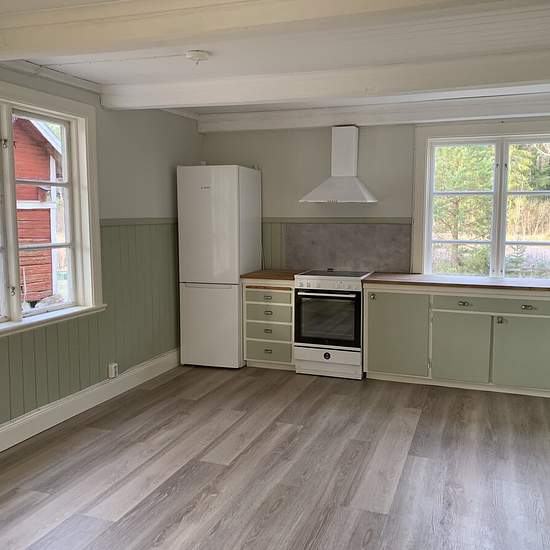 Very nice 90 m² house, four rooms and a kitchen distributed over two floors. 5,000 m² plot; wood shed and unheated storage included. The house is newly renovated/additionally insulated, with a new heating system, two wood-burning stoves and two wood-fired cookers. Large plot in a secluded location, with only the forest as a neighbor; opportunities for gardening and vegetable growing, or walks in the woods. The Upplandsleden trail runs near the plot. We are looking for a tenant who loves natural and cultural environments. Grocery store, sch...