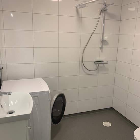 En 4a om ca 80 kvm på våning 2 Genomgående vitmålade väggar och trestavigt ekparkett i vardagsrum och sovrum. Hall med Grå plastmatta på golv(Habitat OAK 2323411 Medium Grey) Kök Vitt Länghem kök, Vitt 10x30 kakel blank ovan diskbänk. Diskmaskin finns. Grå plastmatta(Habitat OAK 2323411 Medium Grey) Badrum Grå plastmatta på golv (Termastar Pure 50605) och vitt kakel på vägg(25x40 vit blank – ljusgrå fog) Inredning: Dusch med drapperi, wc, handfat, kommod, kombinerad tvättmaskin/torktumlare. 3 separata sovrum med förvaringsmöjli...