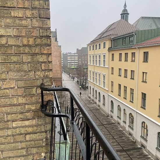 Superfin lägenhet centralt med Fristadstorget med några minuters promenad bort, där också kollektivtrafiken går. Med 2 stycken generösa balkonger med klinker och fin utsikt. En lägenhet med fint ljusinsläpp och vacker fiskbensparkett. Samt 3 stycken toaletter.