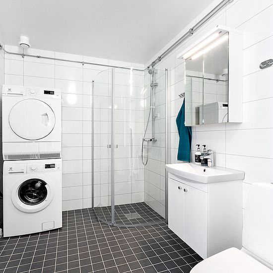 Rental Discount For new customers, we are currently offering a rental discount of 2000 SEK per month for the first two years. After that, the regular rent applies, which is currently 12,817 SEK/month. About the Apartment This apartment was renovated in 2019 with consistently bright color choices. The kitchen is equipped with a dishwasher and full fridge & freezer, and from here you also have access to the balcony. The fully tiled bathroom is equipped with a washing machine and dryer, and there is also a guest toilet. There is plenty of st...