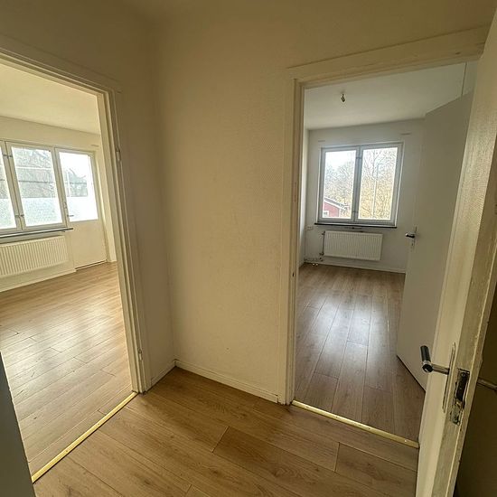 Spacious 4-room apartment of 90 sqm – 1st floor About the apartment: • 4 rooms and kitchen • 90 sqm • Located on the first floor • Bright and cozy • Smart floor plan • Kitchen area with plenty of storage • Fresh bathroom About the area: • Central and quiet location • School and preschool within walking distance • Hospital within walking distance • Bus nearby • Grocery store within walking distance • Health center nearby Other: • Laundry room and storage available in the building • Parking available, heated garage can be rented via Smart P...