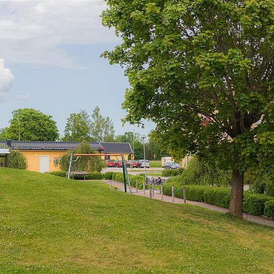 Central location, close to ICA, bus connections and the health center. The ground floor is at street level, with two additional floors above. There is no elevator. The apartments range from 1 to 4 rooms and a kitchen (1–4 ROK). Warm rent; household electricity is charged separately. A shared laundry room and bicycle storage are located in separate buildings. Storage units are in the entrance. Garage and good parking facilities are available.