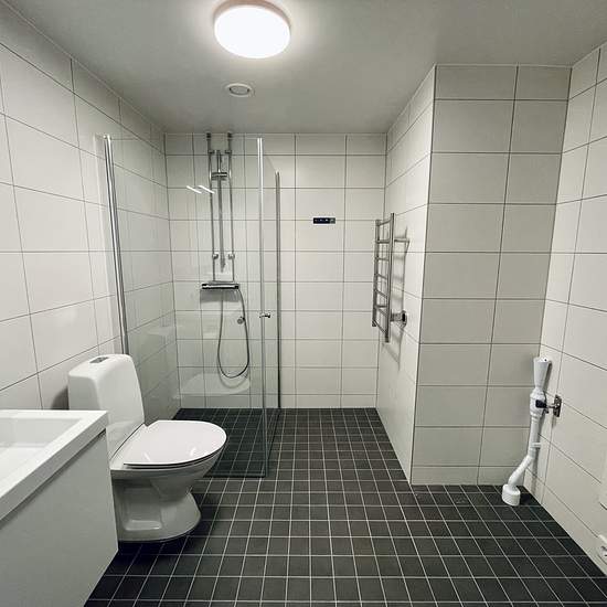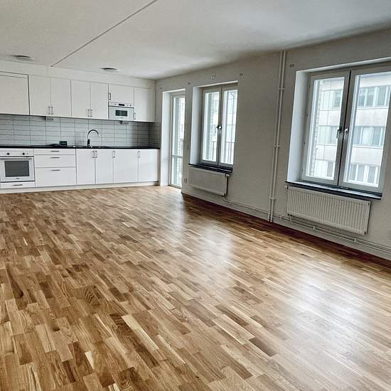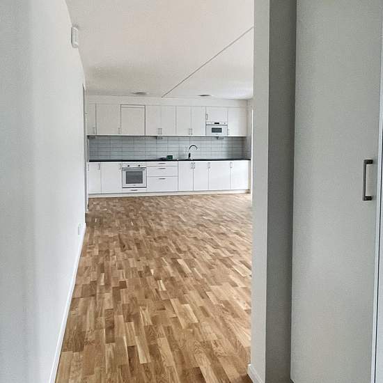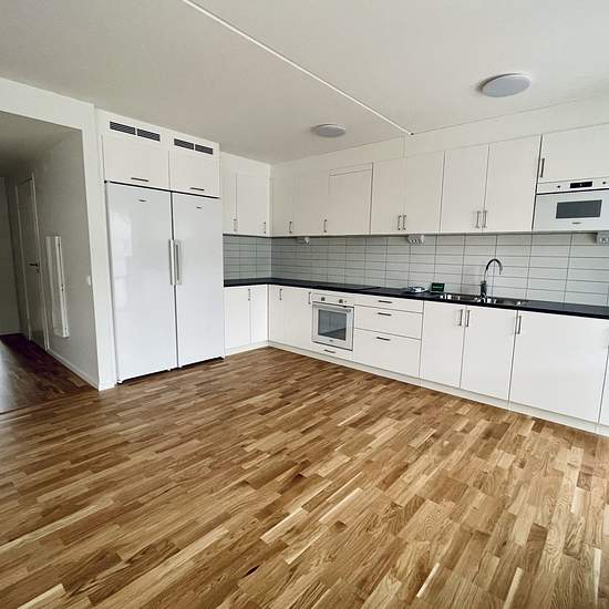 Rymlig, familjevänlig 4:a med balkong och bra förvaring LÄGENHETEN Lägenheten har genomgående ekparkett, vitmålade väggar och fina fönsterbrädor i sten, vilket ger ett ljust och modernt intryck. Den öppna planlösningen mellan kök och vardagsrum skapar en social och luftig känsla – perfekt för både vardagsliv och umgänge. Kök från Ballingslöv i vitt med matchande kakel erbjuder bra arbetsytor och förvaring samt induktionshäll, inbyggd micro och en tyst, konstantflödeskåpa. Här finns dessutom plats och förberedda el- och vattenanslutningar fö...